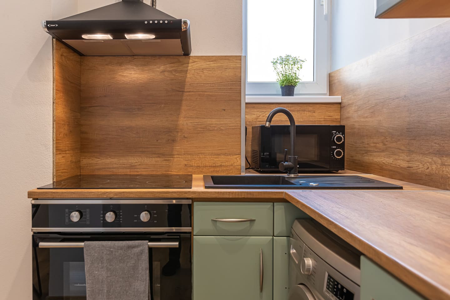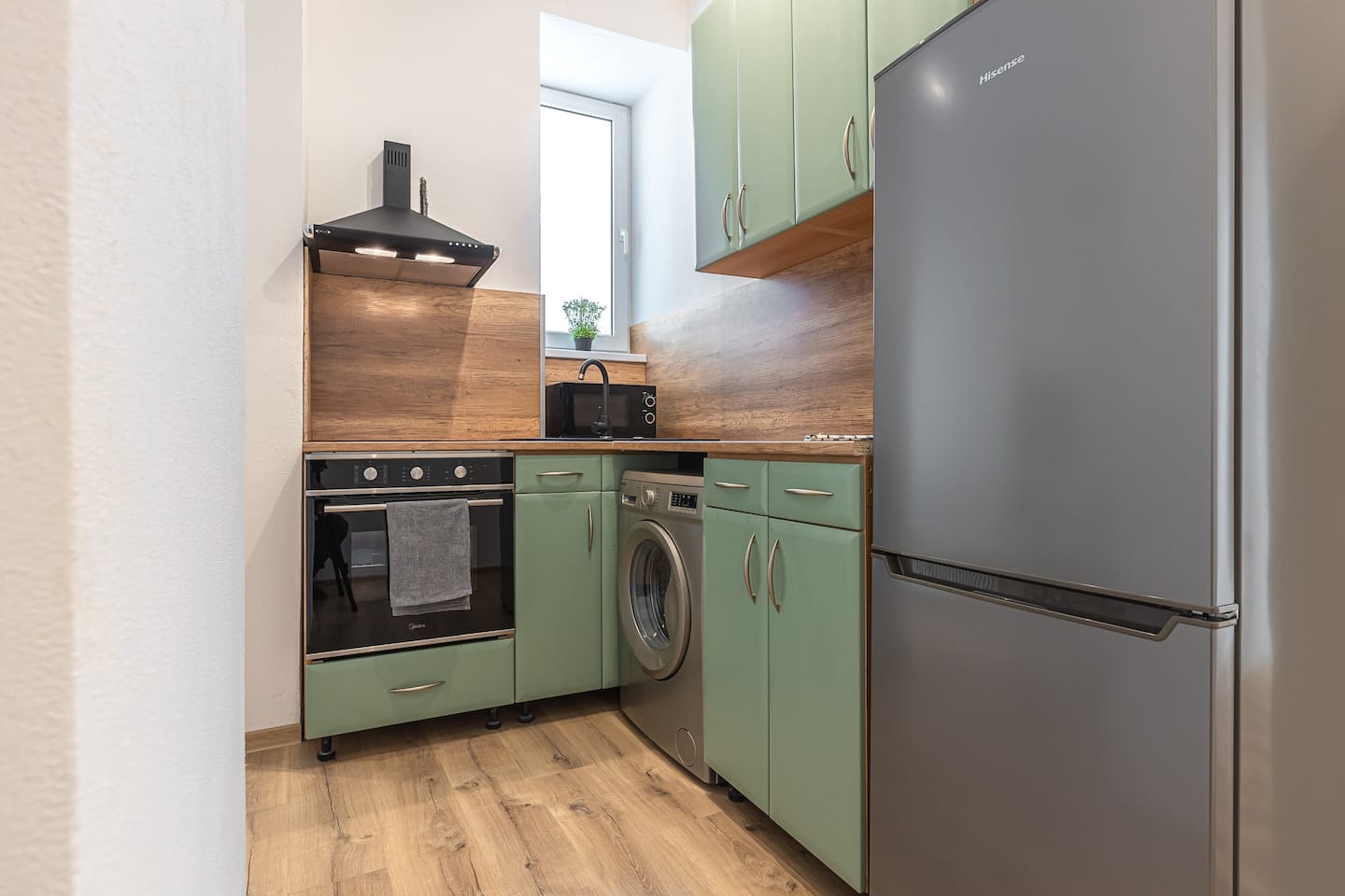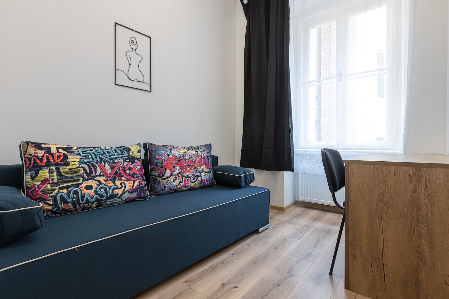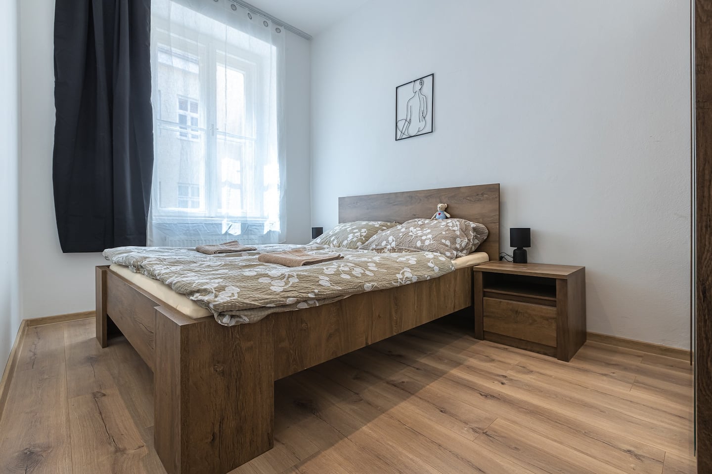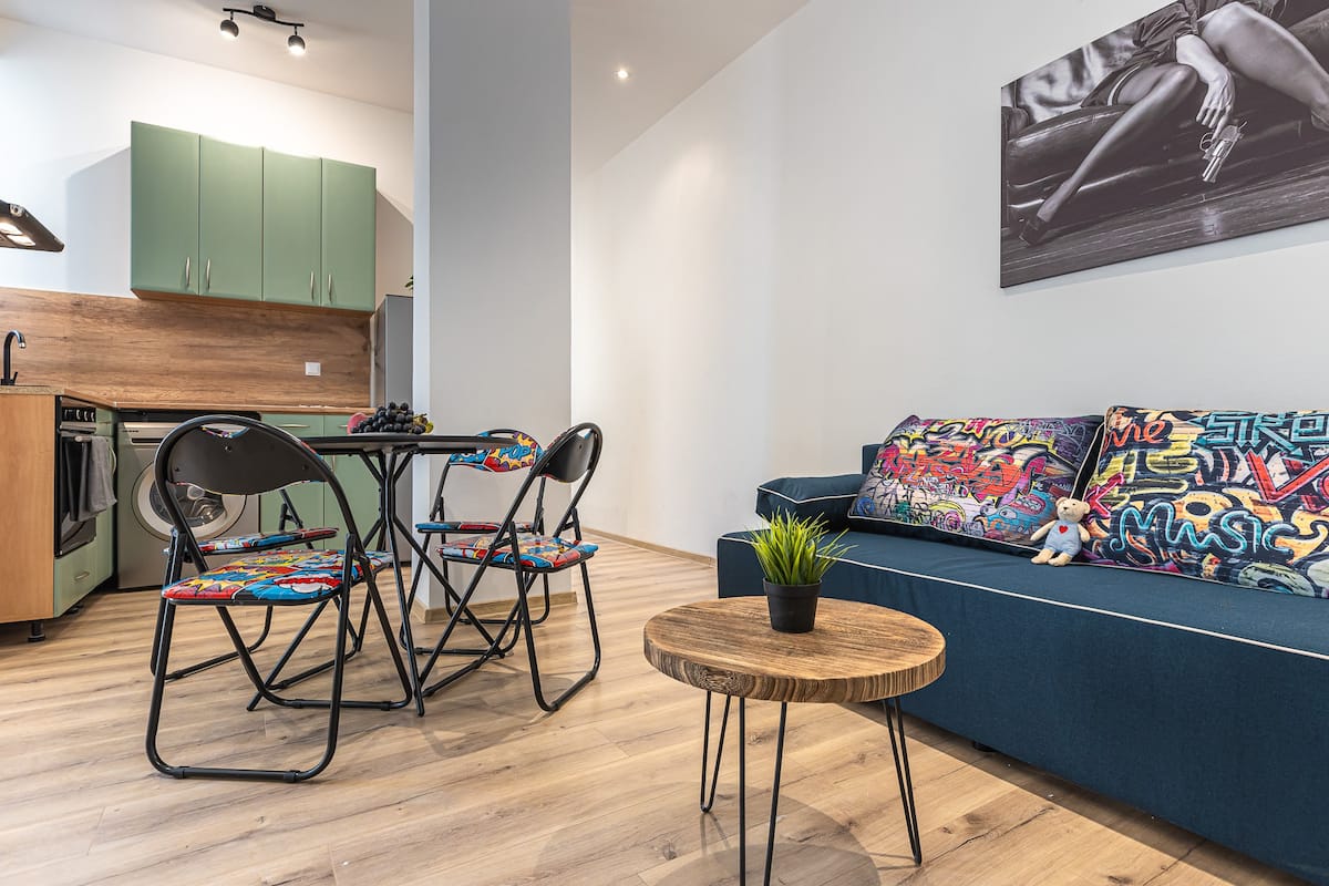 Our newly created place with warm and trendy look. Ideal for a working traveler, a curious couple or even a family eager to explore Bratislava. The place consists of nice full kitchen and dining/living area with comfortable big sofa and smart TV, stylish bathroom with walk-in shower and separate toilet. In the master bedroom, you`ll find a comfortable king sized bed. The second bedroom serves as a cozy study room, the sofa can be turned to a queen sized bed. The place has a balcony. Stay as long as you wish